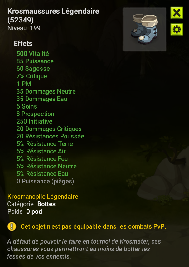 - Panoplie complète (Masque, Cape, Ceinture, Amulette, Bottes)