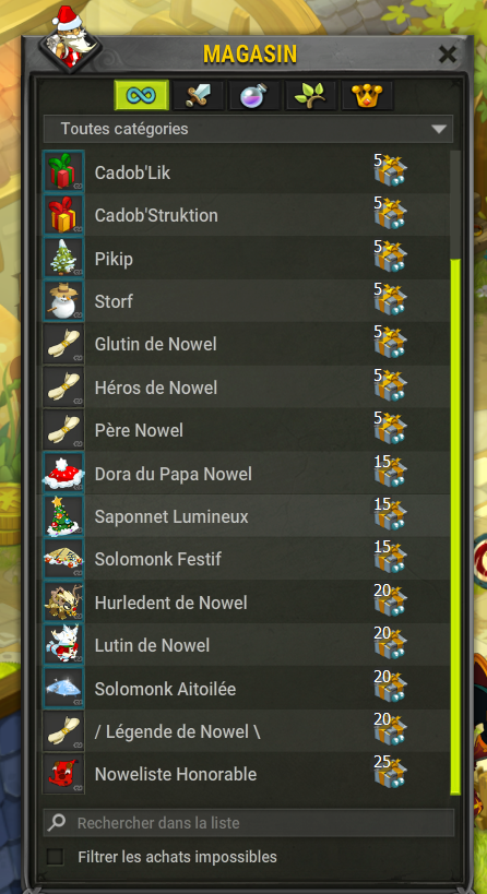 Les Cad'o'd'Nowel sont droppables sur le Boss du Donjon du Papa Nowel (1% de taux). Les cadeaux sont échangeables entre vos personnages.